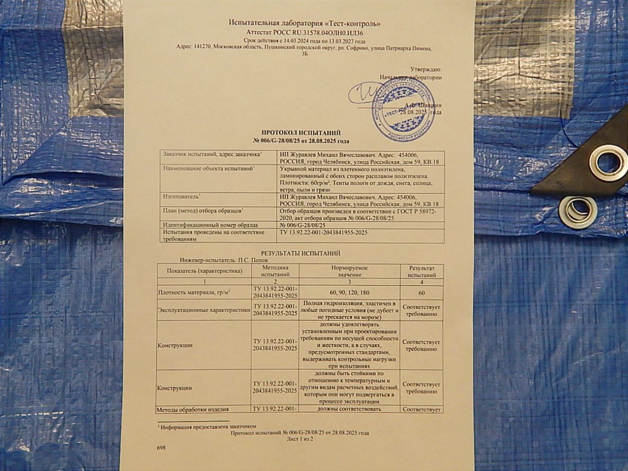 |     60г/м2     |      6х8м      |      1920     |      2,8     |      60/40/3     |